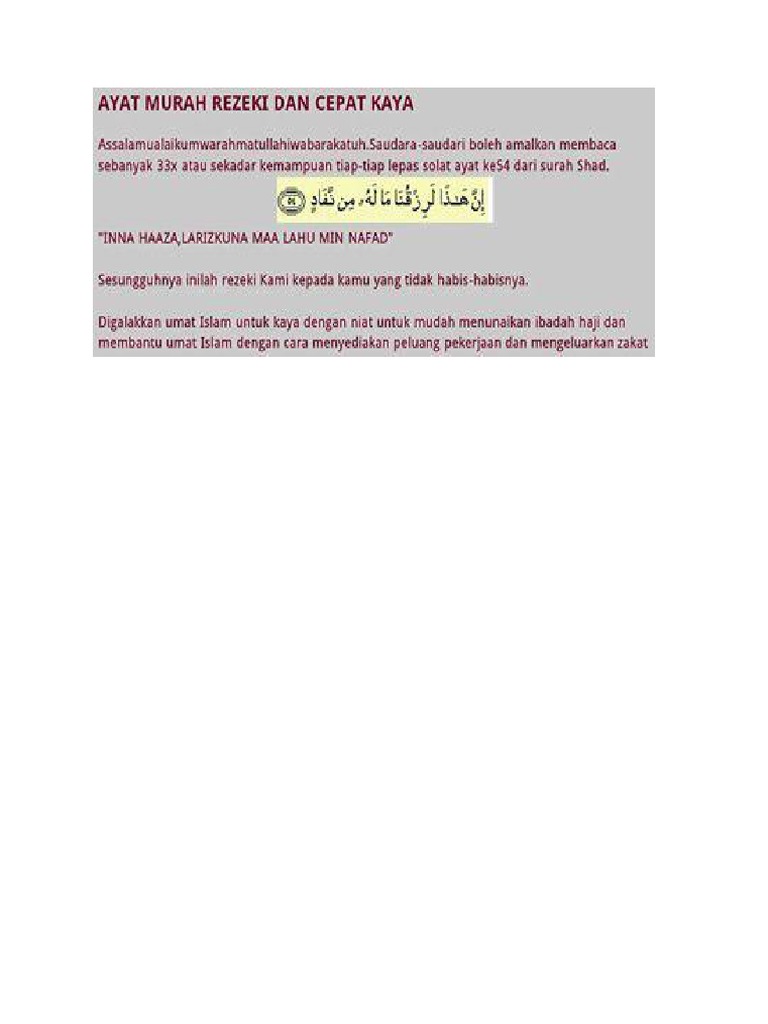 Ayat Murah Rezeki Dan Cepat Kaya