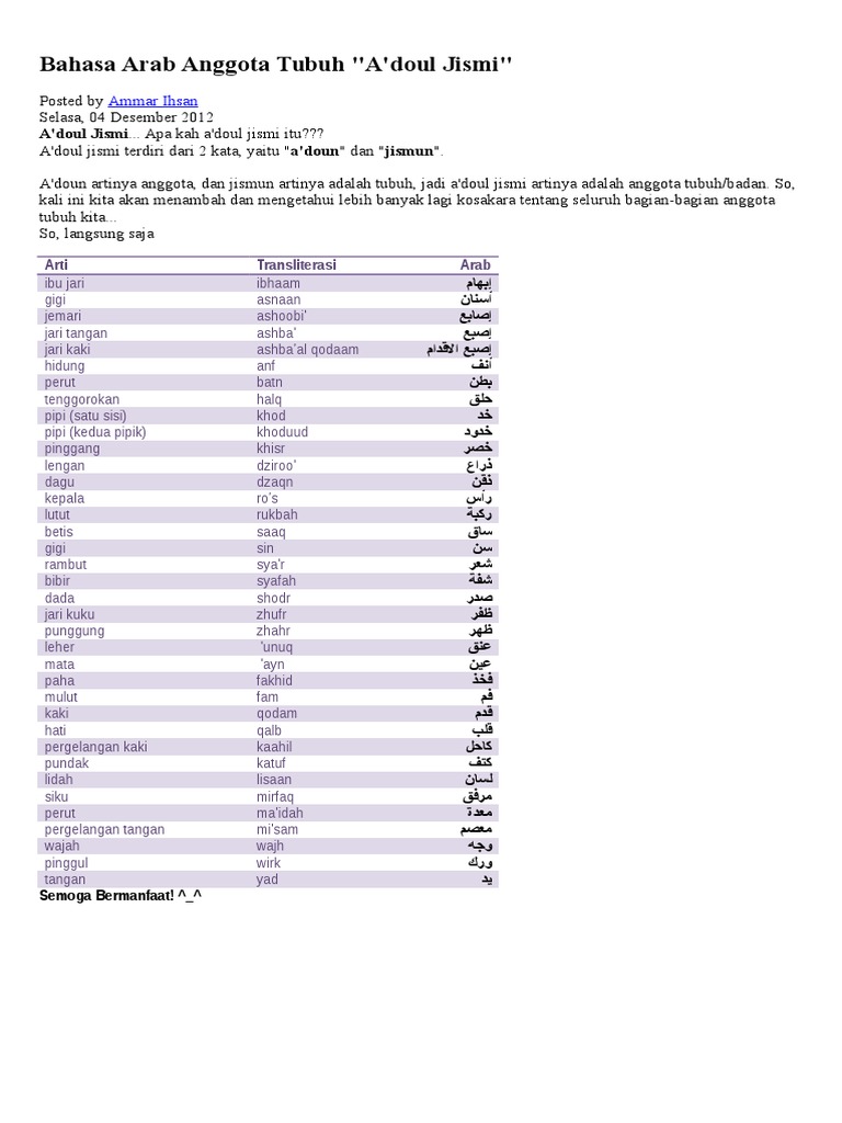 Kosa Kata Bagian Anggota Tubuh Bahasa Arab Bang Dodi