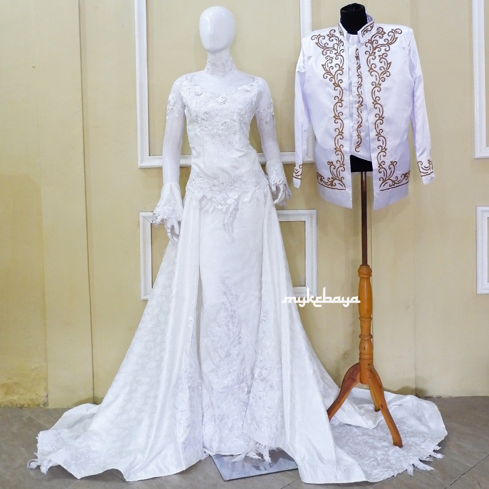 Couple Baju Akad Nikah Kebaya Putih Sepasang Kebaya Pengantin Ekor Satin Modern Kebaya Pernikahan Modern Di Lapak Yashinta Store Bukalapak