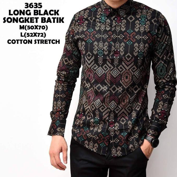 Baju Batik Songket Cowok Lengan Panjang Kemeja Kerja Batik Pria Elevenia