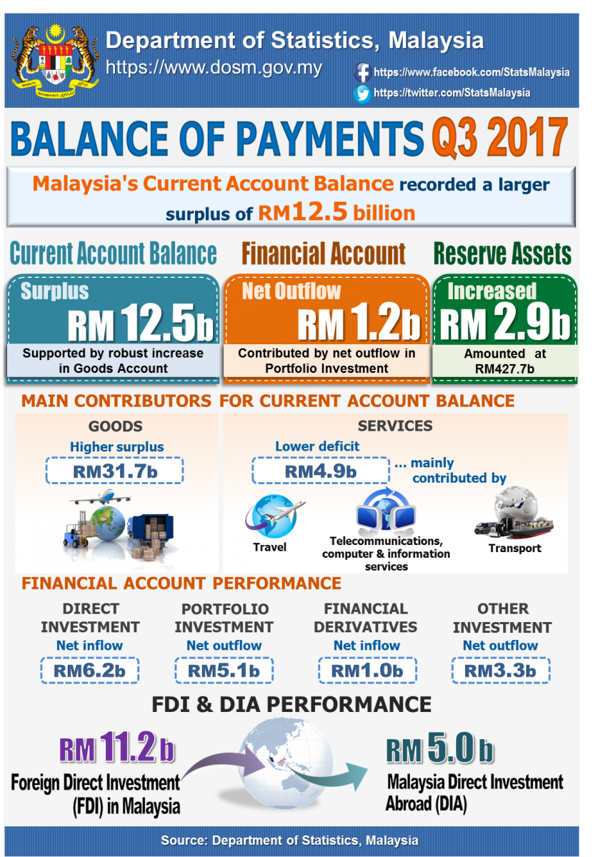 Dr Uzir On Twitter Malaysia S Balance Of Payments Recorded A Larger Surplus Of Rm12 5 Billion In Current Account At Q3 2017 Surplus Was Mainly Contributed By The Robust Increase In Goods Account