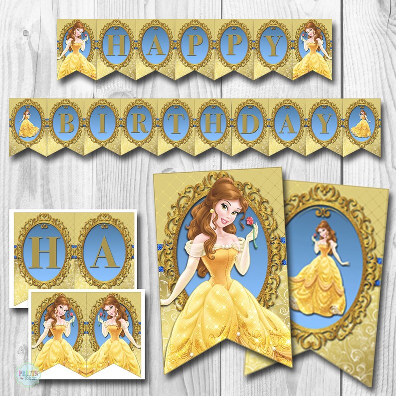Princess Belle Banner Princess Belle Birthday Banner Beauty Etsy
