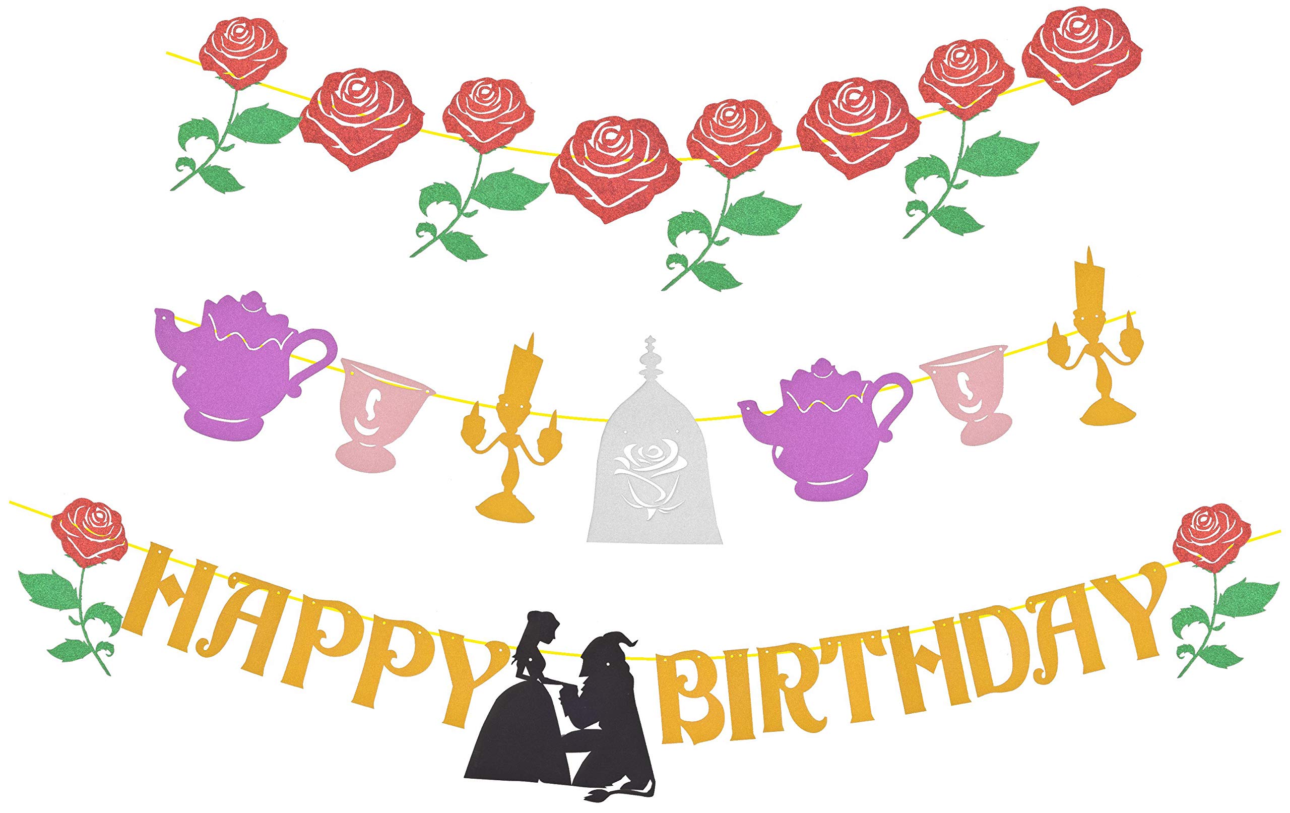 Amazon Com Beauty And The Beast Birthday Party Decorations Beauty And The Beast Birthday Beauty And The Beast Birthday Banner Beauty And The Beast Inspired Be Our Guest Banner Happy Birthday Beauty And