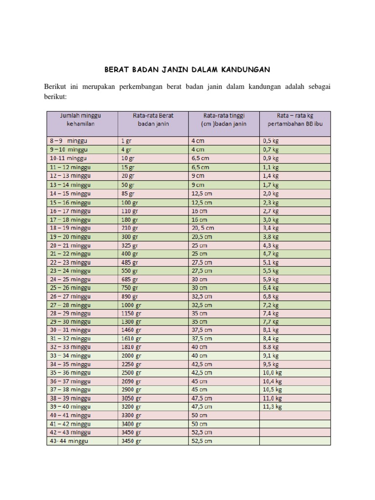 Suami Siaga A Twitter Tabel Perkembangan Berat Dan Ukuran Janin Normal Dlm Kandungan Http T Co Bxo67mxqjk