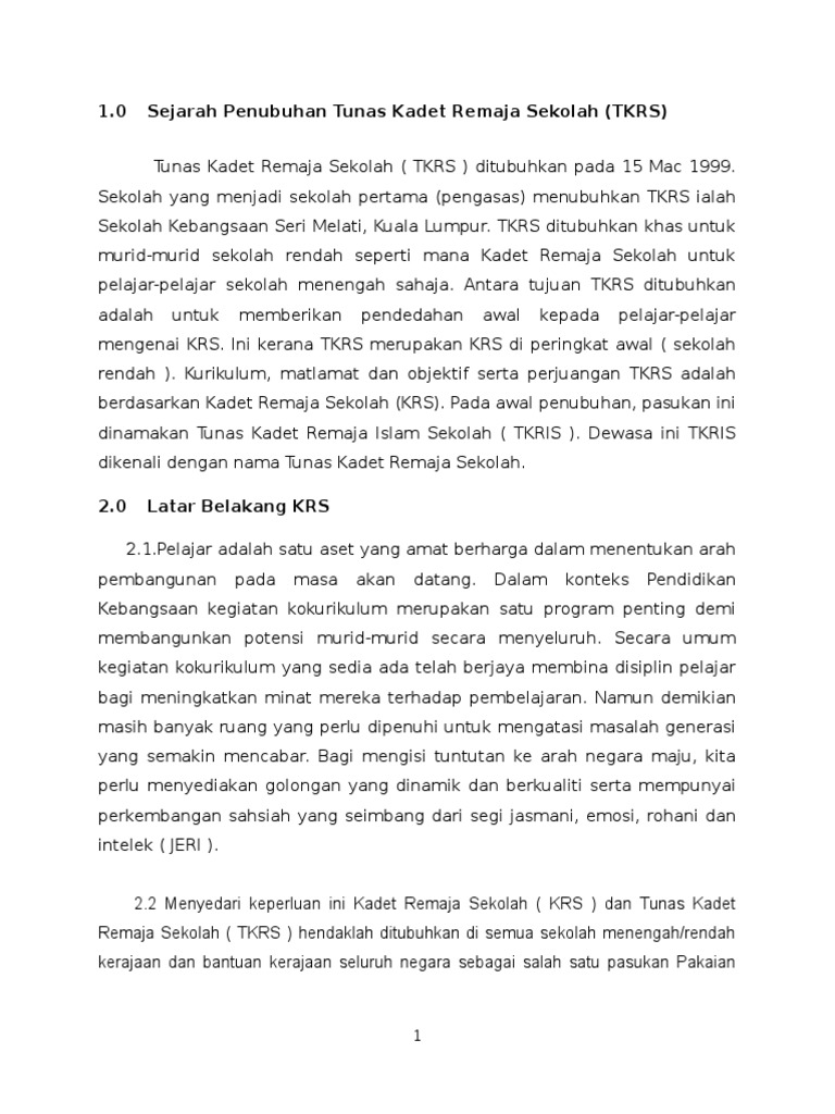 Pengenalan Tkrs Sejarah Penubuhan Tunas Kadet Remaja Sekolah Tkrs