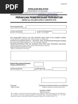 Borang Medical Check Up Jabatan Laut