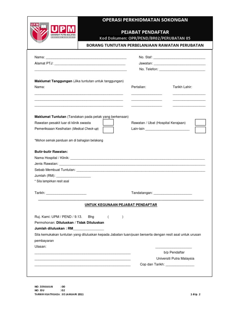 Borang Tuntutan Perbelanjaan Rawatan Perubatan