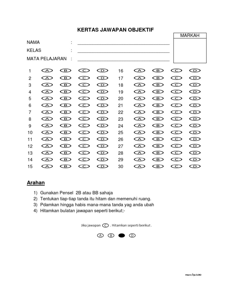 Kertas Jawapan Objektif 20 Soalan Cikgu Ayu Dot My