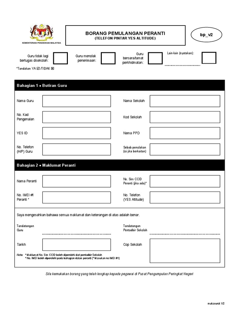 Borang Pemulangan Peranti Bp V2 Telefon Maklumat No Sim Ccid Boleh Diperolehi Dari Pentadbir Sekolah No Imei Boleh Diperolehi Pada Bahagian Dalam Peranti Masukan No Imei