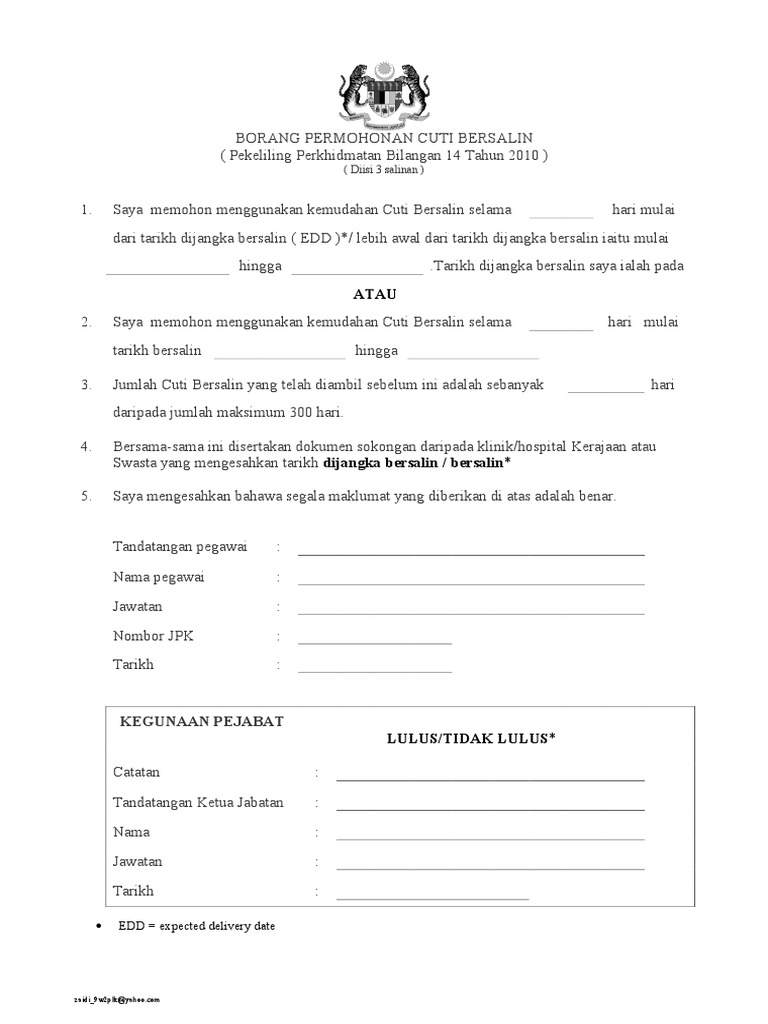 Borang Permohonan Cuti Bersalin Pekeliling Pdf Document