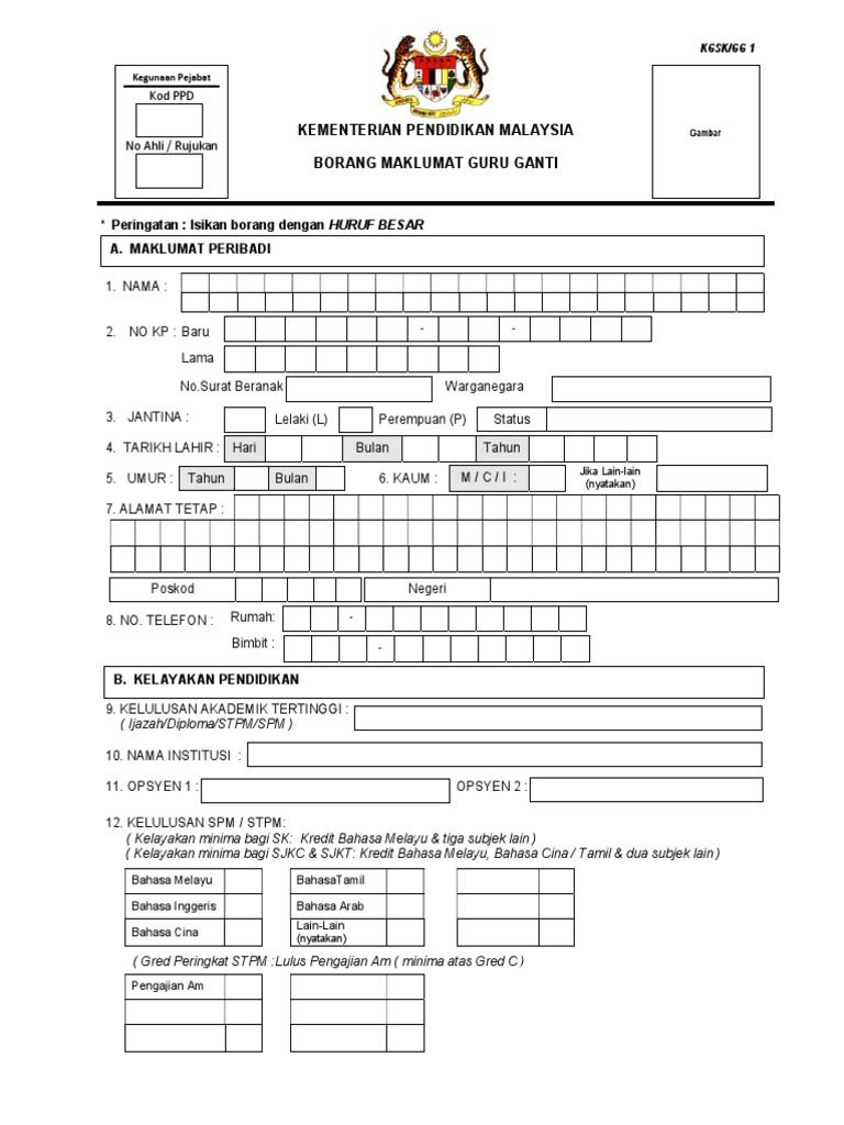 Borang permohonan guru ganti kgsk. Semua ahli kgsk dikehendaki mengemaskini maklumat peribadi. Pilihan daerah sila pilih daerah anda. Dapatkan borang permohonan guru ganti dan pengalaman sendiri dapat gaji yang ditawarkan.